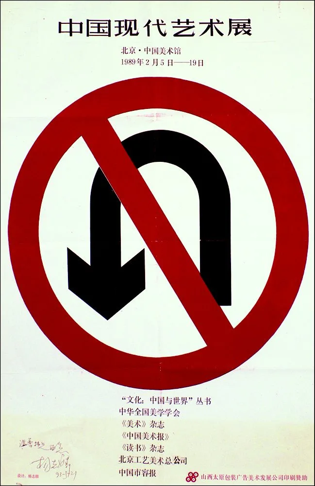 At Blindspot, Wang is also premiering the second part of The Second Interrogation, a newly finished one-channel video that follows the artist character as he rehearses a group performance in a large exhibition hall, which features banners with the logo for the “China/Avant-Garde” show: a no U-Turn sign. There are a few dozen young people on hand, and they move in formation, jostle each other, and at one point scream wildly. The censor from the first part is there, too, and (partial spoiler alert) he has a gun.